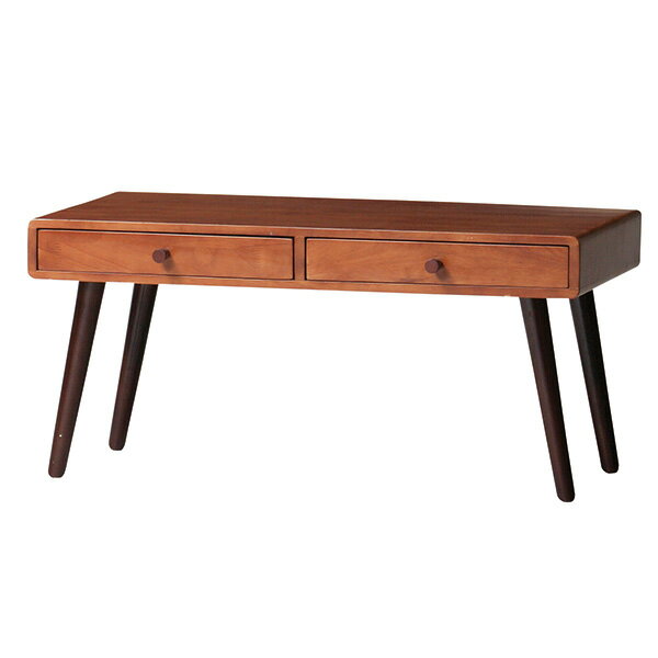 ローテーブル暖かいブラウン色、かわいいサイズ感の1人暮らしにおすすめな引き出し収納付き木製テーブル。